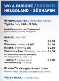 Die sanitären Einrichtungen sind gebührenpflichtig gemäß des gezeigten Aushangs.