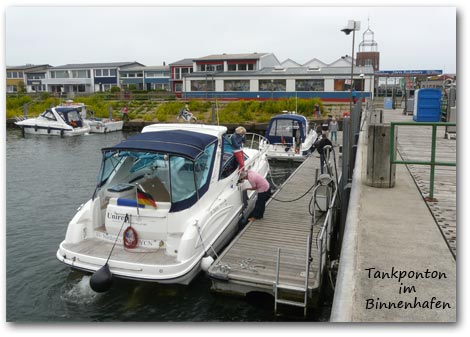 Diesel und Benzin kann man an einer Bootstankstelle (ESSO) im Binnenhafen bunkern.