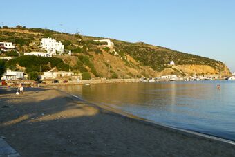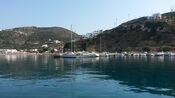 (Besucht 2015) Die neue Hafenanlage ist in sehr gutem Zustand. Die Gastlieger-Bereiche sind gekennzeichnet, auch wird man eingewiesen. Bei starkem Nordwind (Meltemi) wird längsseits angelegt, u.U. auch im Päckchen. Die starken einfallenden Böen würden sonst die Mooringverankerungen beschädigen. Man liegt trotzdem sehr ruhig und sicher. Bei normalen Windverhälnissen liegen Mooringleinen bereit und man legt röm.kath. an. Wir haben incl. Wasser / Strom für eine 11,99 mtr. Yacht 12,-€ bezahlt (2015). Im dem sehr netten Ort gibt es zahlreiche gute Tavernen und 2 Supermärkte. Auch hat der Ort einen sehr weiträumigen Sandstrand mit guter Wasserqualität. [1]
