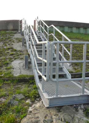 Ob diese Kritik zur Verbesserung der Situation beigetragen hat oder das zuständige Amt selbst drauf gekommen ist, kann ich nicht beurteilen, jedenfalls gibt es seit 2014 eine aufwendig konstruierte neue Treppe aus verzinktem Metall.