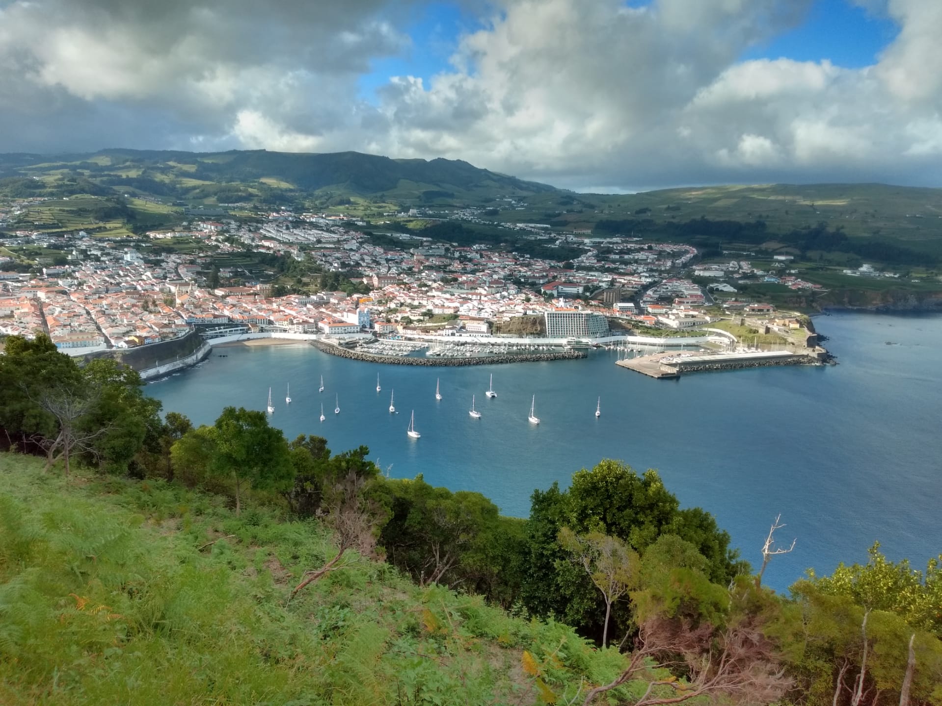 - Angra do Heroísmo ist die lebendige und sehenswerte Hauptstadt. Ihre kleine Marina bietet mehrere Plätze für Transityachten an Fingerstegen oder Mauer. Wer nicht in die Marina will, kann davor gut geschützt Ankern. Wer Ankert muss sich beim Hafenmeister anmelden und darf dann sein Beiboot an der Tankstelle deponieren und die Sanitäranlagen mitgebrauchen. Diese sind ausgesprochen gross ausgelegt. Eine Selfservice Wäscherei mit zwei Waschmaschienen und einem Trockner können mit Tockens benutzt werden. Die Sanitäranlagen sind nur tagsüber geöffnet und schliessen um 20 Uhr. Kosten entsprechend der Puertos des Acores Preisliste (Beispiel: ca. 20 Euro für 15m 2019)