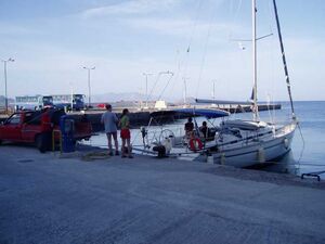 Dieser Hafen ist besser als Mandraki gegen Schwell geschützt. Allerdings ist dieser Hafen auch deutlich enger und vor allem flacher. Für Yachten hinreichende Wassertiefen findet man nur am Nordpier. Da die Wassertiefe nach Süden schnell auf unter 2m abnimmt, die ins Wasser gehenden Ankerketten den tieferen Teil jedoch teilweise blockieren, ist das Manövrieren nicht ganz einfach. Dennoch ist dieser Hafen sehr beliebt und entsprechend früh voll. Frischwasser gibt es nach telefonischer Absprache abends an der Pier.