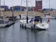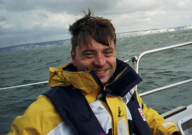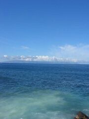 Seewind: Tagsüber erzeugt das aufgehitzte Land aufsteigende Luft und damit ein thermisches Tief in Bodennähe. Die aufsteigende Luft bildet häufig Cumulus-Bewölkung. (Erstellt mit Inkscape für SkipperGuide)