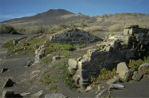 Durch Vulkanausbruch unter Asche begrabenes Haus auf Faial