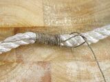 Man legt die Takelschnur in einer Bucht parallel zum zu schützenden Ende. Mit der ersten Wicklung um das Tau an der offenen Seite der Bucht fixiert man diese.