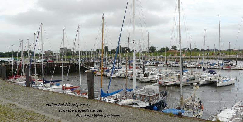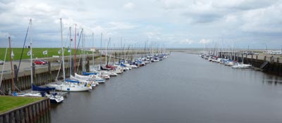 Über Prickenweg zugänglich, ohne Schleuse. Alternative zu Hooksiel, falls man nicht zu den dortigen Schleusenzeiten ankommt, allerdings ist die Hafenzufahrt tidenabhängig, so dass man zur Einfahrt genug Wasser braucht.