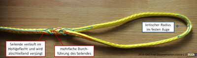 - Augspleiß in gedrehtem Tauwerk und Kern-Mantel-Geflechten, Verbindung Draht und Tau