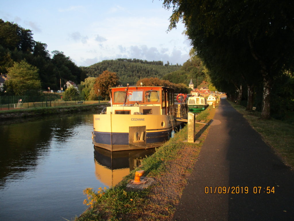 Der TGV von München war pünktlich, die Fahrt durch Straßburg problemlos und auch auf der Autobahn war es normal, so kamen wir mit dem Benz meiner Partnerin und den zwei Hunden sehr schnell voran. Als wir dann bei strahlendem Sonnenschein schon so gegen 13:00 in Niderviller eintrafen, teilte uns ein junges Girl mit, dass wir das Boot, die Kormoran 1140, obwohl schon fix und fertig, erst um 15:00 übernehmen könnten, früher würde es was kosten. Vor einem Jahr, auch im September, war dies noch kein Problem?