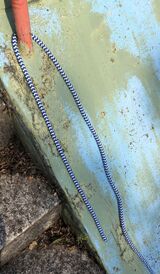 | Nun führt man das lose Ende noch einmal durch den Ring oder um die Stange. Es sind anderthalb Rundtörn entstanden. | |
