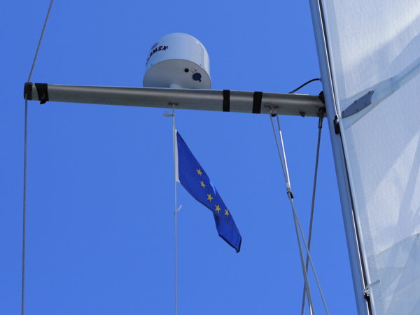 Kurze Zeit später sind wir bei 13 m/s, da müssen zwei Reffs rein. Ist übrigens das erste Mal, dass wir unser dieses Jahr neu angeschafftes Großsegel reffen. Läuft super mit dem Einleinenreff und das Segel lässt sich gerefft perfekt trimmen. Wir sind zufrieden.