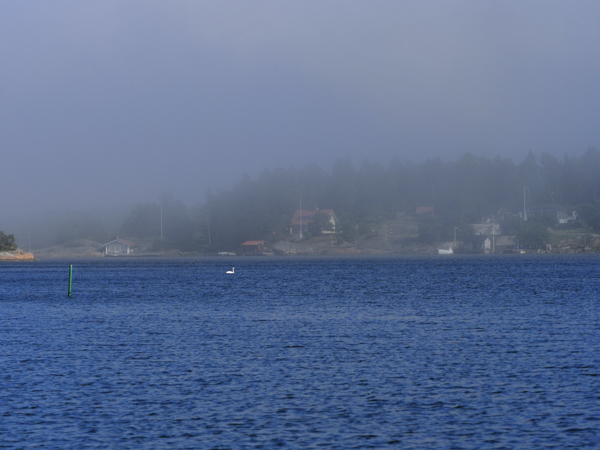 Panik beim Aufwachen: Draußen ist Pottennebel. Den Hafen sieht man gerade noch, Fänö nicht mehr. Also erst mal gaaanz geruhsam frühstücken. Und dann mal kucken. So gegen 10 kommen dann die ersten Details raus, die weiter weg sind als eine Meile. Also: Boot klar machen und los.