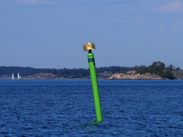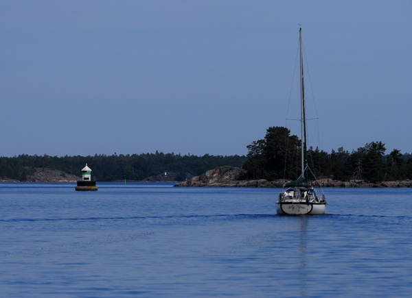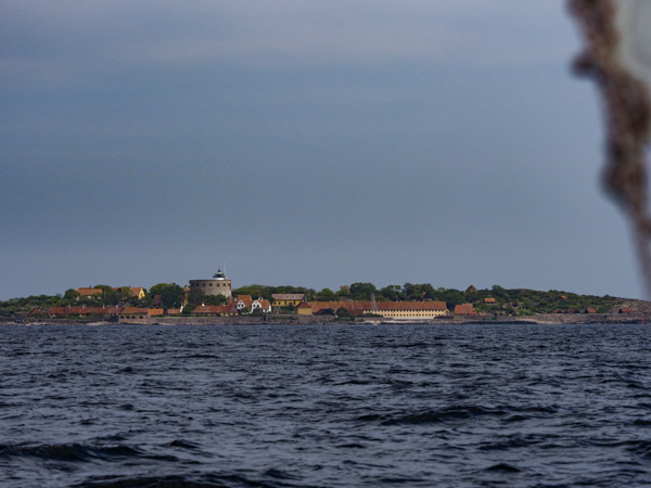 Das lief super, gestern. Erst mal von Sandhamn aus einen harten Anlieger gen Süden, dann Wende südlich Utlängan, und mit einem Schrick in den Schoten rüber zur Einfahrt in die Schären bei Drottningskär. Geht ab wie Schmidts Katze. Wir hätten auch das Schärenfahrwasser nehmen können, aber das wäre ein ziemliches Gekreuze geworden. Mit der Selbstwendefock sicher kein Problem, aber wir haben nun mal schon die Genua drauf. Also rein nach Karlskrona durch das militärisch hochbefestigte Südfahrwasser.