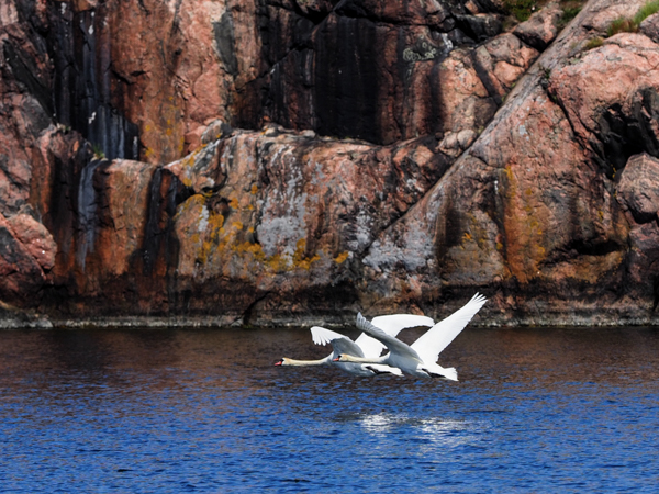Morgens werden wir geweckt von Eiderenten, die sich unmittelbar neben der Bordwand unterhalten: "Waaak, wack, wack, waaak ...." An Weiterschlafen nicht zu denken. Also ablegen und los, von nun an Generalrichtung Nord. Ein ziemlich raumer Raumschotskurs, der sich aber noch mit der Genua bewältigen ließ. Und dann taucht Utklippan auf: