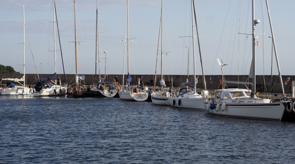 In Klintholm war Massentreffen. Erstaunlich, dass 9 Boote gleichzeitig auf die Hafeneinfahrt zusteuern können, obwohl sie aus fünf verschiedenen Richtungen kamen. Innen wurde uns klar, warum das so voll war: Sonntag! Sonntag? Ja, da fahren die Charteryachten aus Breege zuerst mal nach Klintholm.