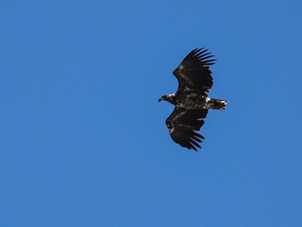 Dann am frühen Nachmittag ein Lichtblick: Der Himmel reißt auf, ein Wolkenloch äußerst begrenzten Ausmaßes über uns. Das macht Eindruck zusammen mit den Wolken.