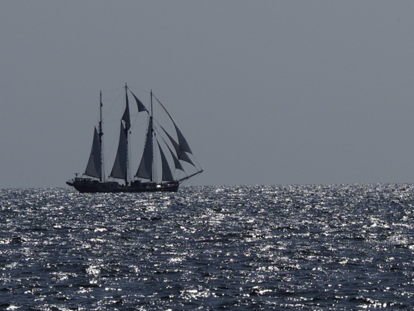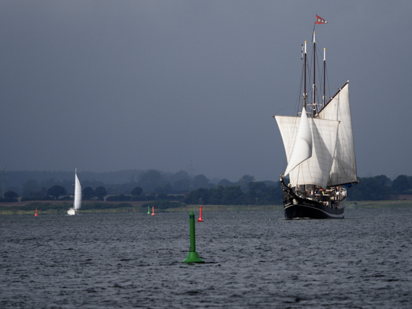 Prächtigen Wind hat auch noch dieser Schoner, der mit Vollzeug draußen vorbeikommt: