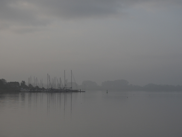 Und jetzt geht's los mit Vorbereitungen für das Winterlager, denn da wollen wir morgen oder übermorgen hin. Segel abschlagen und ab in die Säcke, Strecktaue wegpacken, laufendes Gut ausscheren und aufschießen, und vor allem Listen fertigschreiben, was alles im Winter erledigt werden muss. Ein schönes Stück Arbeit. Aber richtig schön ist es hier im Herbst, wenn sich der Nebel dann auch langsam lichtet.