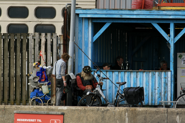 Im Hafen selbst steppt nicht mehr der Bär - reiner Normalbetrieb. Einige schräge Typen hängen vor der Hafenkneipe.