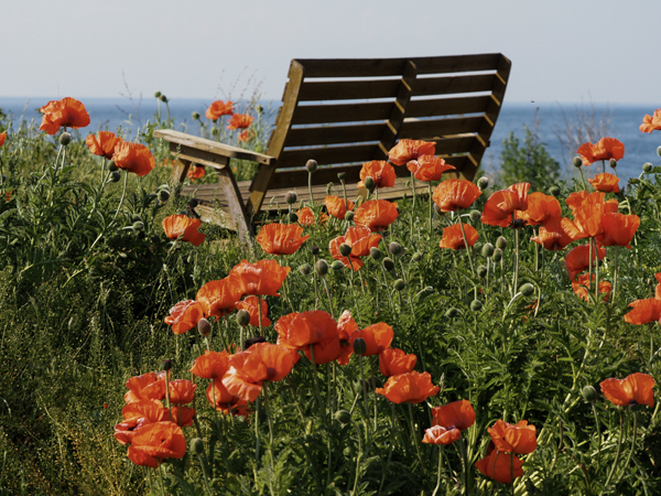 Eine schöne Insel. Haben Soldaten das früher gut gehabt! Herrliche Blumen und ein höllenlauter Froschteich - Paarungszeit.