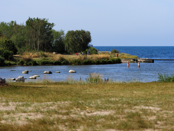 Dafür ist die Umgebung umso schöner. Im Süden gibt es eine fabelhafte Badebucht, sogar mit Sandstrand.
