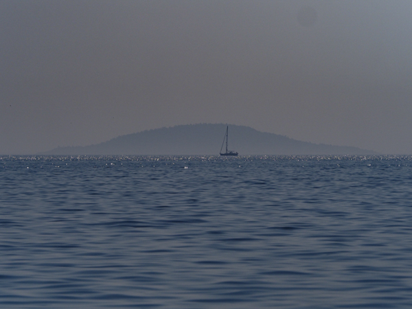 Heute beim Weiterfahren ist es immer noch dunstig, auch noch in Omö.