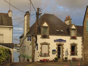 In der zweiten Reihe hinter der Häuserfront am Kai liegt die Créperie le Goéland. Hier bekommt man zu zivilen Preisen die landestypischen und sehr leckeren Galettes und Crepes in allen möglichen Variationen. Dazu ein Cidre Cru de Bretagne vom Val de Rance (der trockene ist der bessere...)? Beim gemütlichen Sitzen und Schlemmen geht der Blick über den Fischerhafen mit den alten Kähnen.