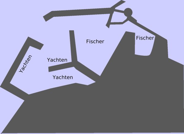 | aktuell | 17:16, 9. Apr. 2007 | 600 × 437 (19 KB) | Erik (Diskussion | Beiträge) | {{BildquelleFoto|Erik}} Die kleine Skizze dient nur zur groben Orientierung, da die gängigen Hafenführer diesen Ausbaustand noch nicht zeigen. Sie ist nicht massstabsgetreu. Sie entspricht ungefähr dem Ausbaustand im April 2007. Die |