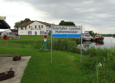 Auf der anderen Seite der Eider, an einem Arm, der nicht durchfahren kann, liegt der Yacht-Club-Eider.
