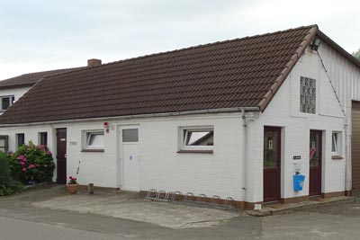 Das Sanitärgebäude hinter dem Hotel-Restaurant