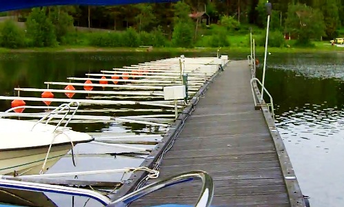 Anlegen längs am Steg oder zwischen Auslegern an der Landseite des Schwimmsteges.
